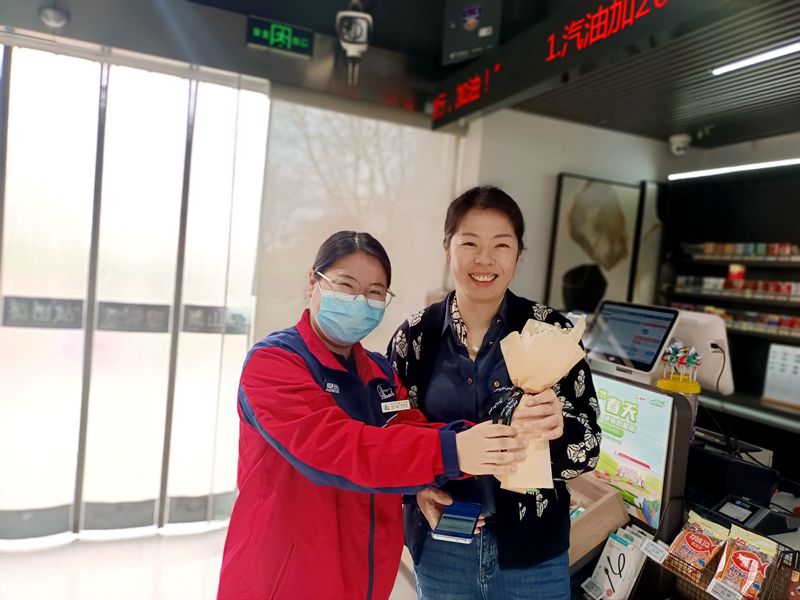 一大早節(jié)日的氣息便撲面而來,作為活動主陣地的各加油站,準(zhǔn)備了一束束漂亮的香檳玫瑰,喜迎往來顧客,為今日來站消費(fèi)的女顧客們送上美麗的鮮花和節(jié)日的美好祝福。“早上就有驚喜!美好的心情一下子就有了!”收到鮮花的女顧客們開心地向加油員們道謝,并祝女同胞們節(jié)日快樂。公司婦聯(lián)也在今天上班的第一時(shí)間為兩位女領(lǐng)導(dǎo)及行政女員工們送上了漂亮的鮮花和節(jié)日的問候。