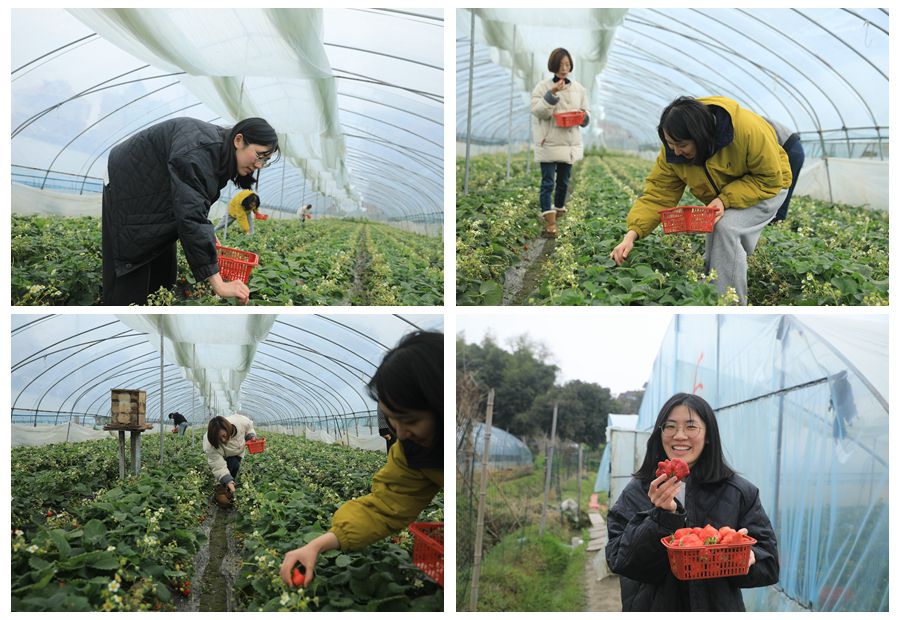 女職工們手提小籃,穿梭在田壟間,一邊采摘,一邊交流,歡聲笑語(yǔ)不斷,盡情享受著田園采摘的樂趣。采摘結(jié)束后,大家還品嘗了新鮮的草莓,并合影留念,記錄下這美好時(shí)刻。