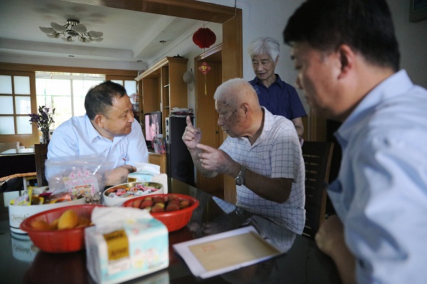 在公司黨委書記林雄衛的帶領下,公司黨委委員周楚軍、黨員代表葛仲軍等一行先后來到離退休黨員俞金堂和困難黨員陳國榮家中探望,仔細詢問了他們近來的生活和家庭狀況。俞金堂今年已經90歲高齡,因聲帶做過兩次手術,說起話來十分吃力。但見到昔日的同事,他顯得十分高興。而陳國榮因妻子長期患病,家中經濟拮據,好在女兒即將從大學畢業,言辭間滿是為人父母的自豪與期待。離開前,黨員代表們向兩位黨員送上了慰問金和誠摯的祝福,并表示公司黨委會一如既往地關心和支持老黨員們,使他們時刻感受到家一樣的溫暖。
